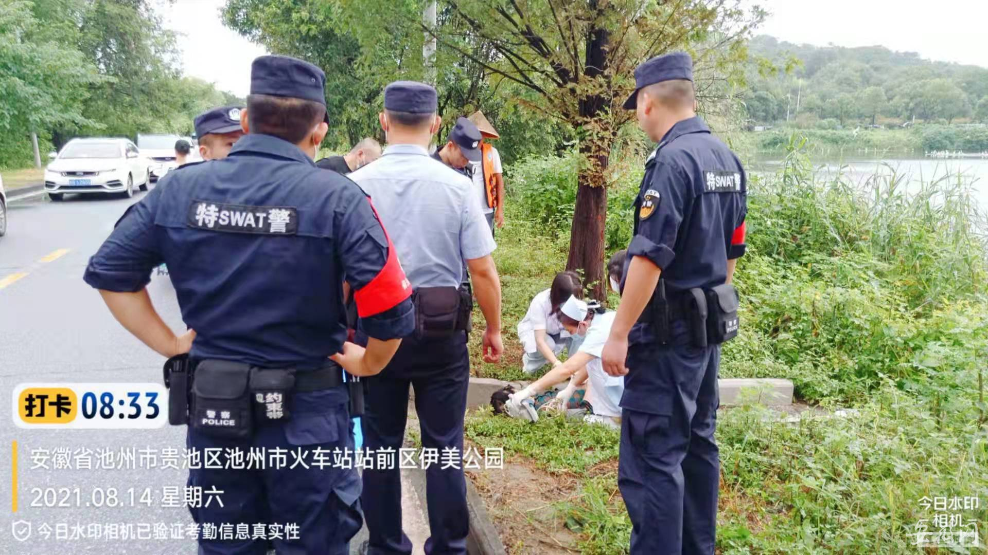 巡湖途中遇老人溺水 池州两名物管工作人员跳湖救人
