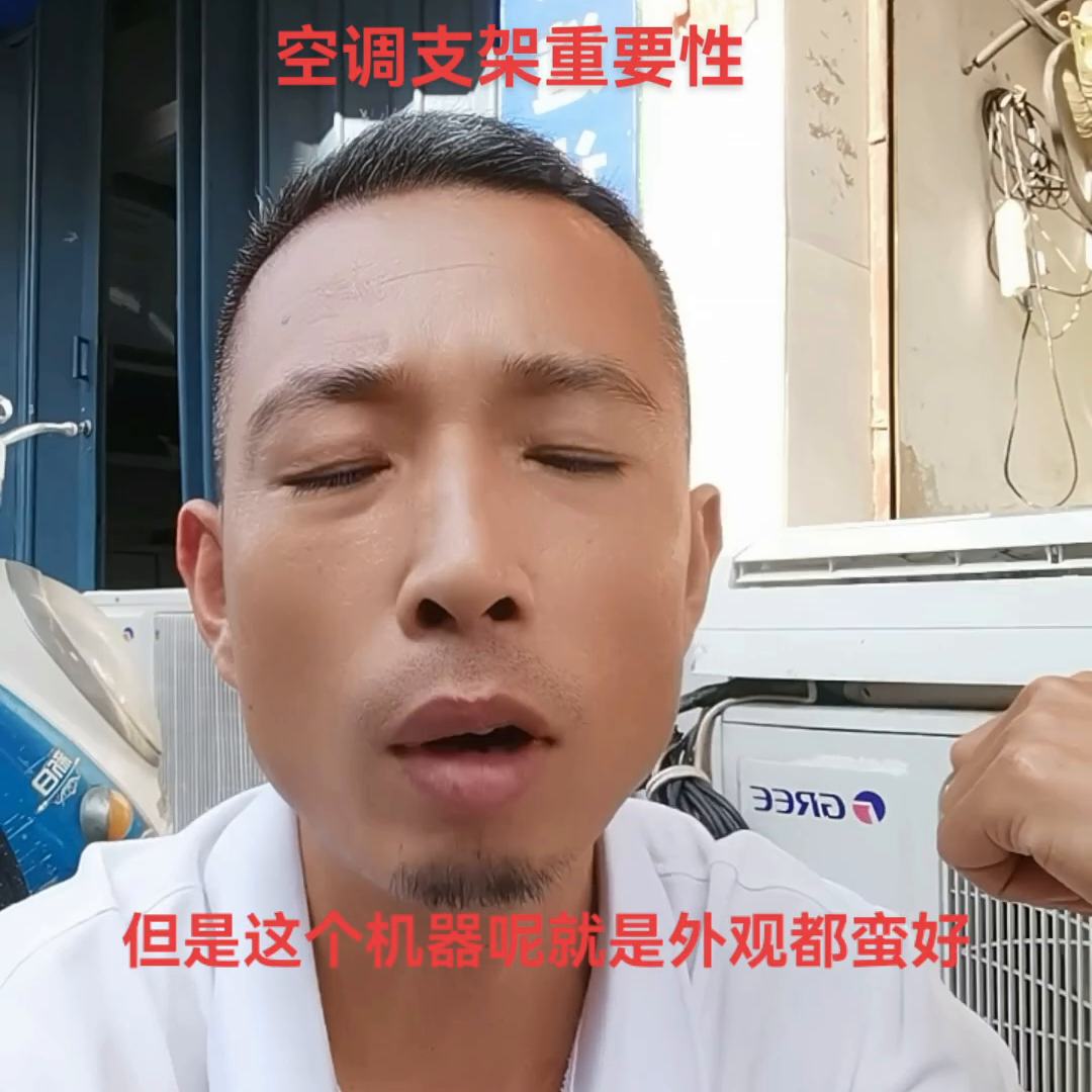天气晴朗买空调的特别多,建议大家买空调的时候不管是在经销商的跟经销商协商,把空调支架配好一点,多花几十块钱我觉得都有必要。再有的用户机器都蛮好,外面的支架都修的要塌下来。各方面的行走的人身安全。别人路上有的高空坠物也不好,还对维修师傅的安全的各方面都有影响。
