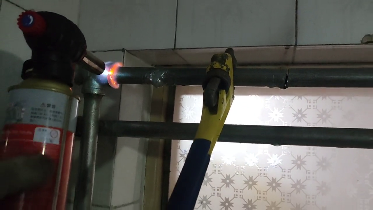 ·管子结断了用火烤烤,把这块漏水的卸下来,大力出奇迹,见证奇迹的时刻。