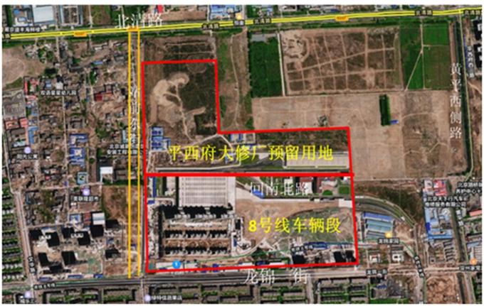 从项目位置看,平西府车辆大修厂位于昌平区平西府地区,北起北清路以南,南至回南北路,西起站前东街,东至黄平西侧路以西,与轨道交通8号线平西府车辆段北侧贴临,占地约21公顷,建筑面积约10.4万平方米。