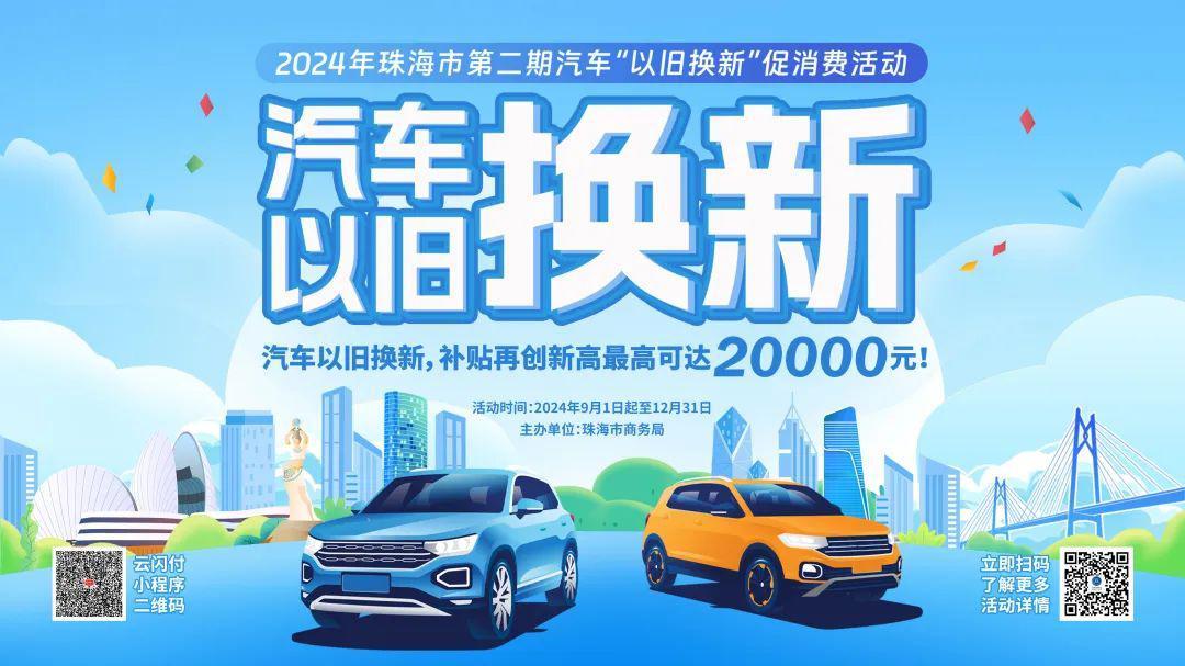 2024年珠海第二期汽车、家电“以旧换新”两场消费活动,将持一直续至12月31日。