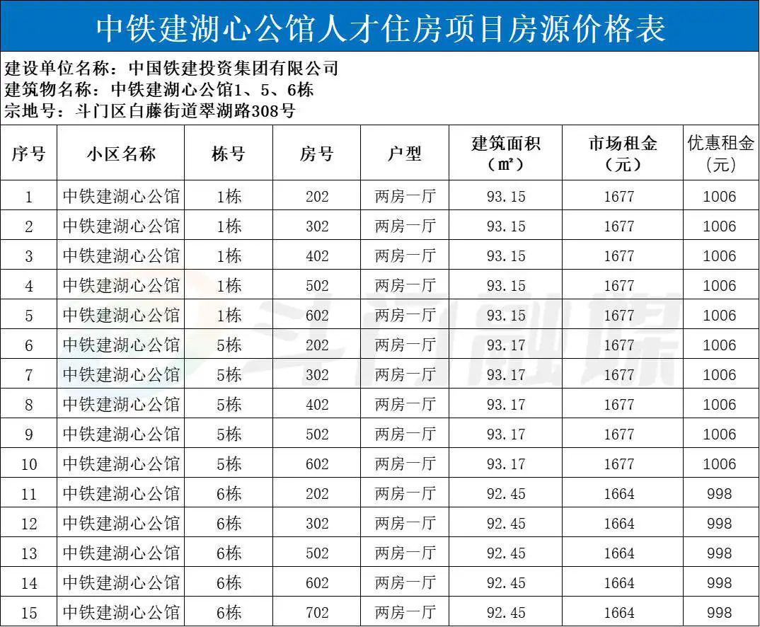 中铁建湖心公馆,位于斗门区白藤街道翠湖路308号,毗邻家和城广场。本次配租人才住房15套,均为92-93平方米三房一厅户型 ,含家具家电。