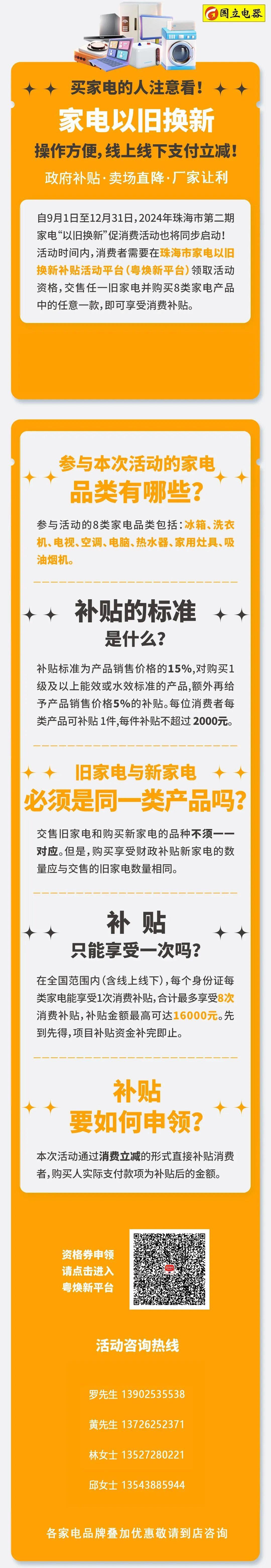 珠海市新一期汽车、家电“以旧换新”消费活动,自9月启动以来持续火热!近日,小斗来到国立电器井岸店看见,不少商家门口、门头都贴挂出家电“以旧换新”的横幅和海报。