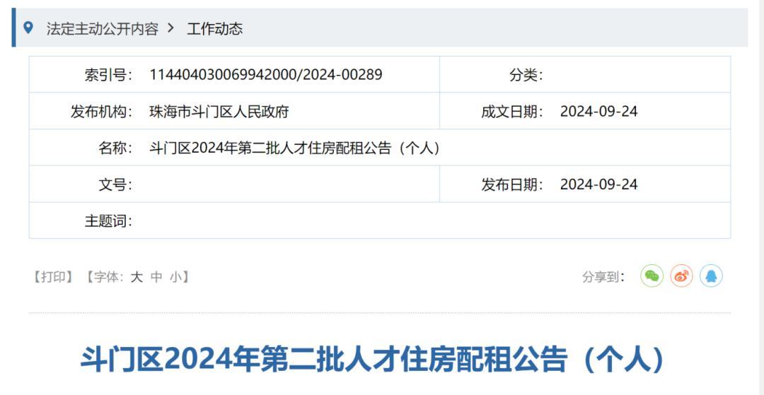 24日,斗门区住房和城乡建设局发布《斗门区2024年第二批人才住房配租公告(个人)》(以下简称“公告”),启动今年第二批人才住房配租工作。