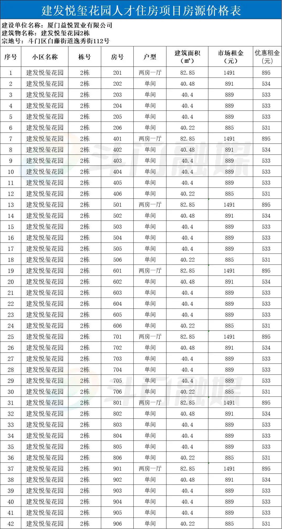 小斗了解到,该项目配租的人才住房共42套,有40平方单间、80平方两房一厅两种户型。