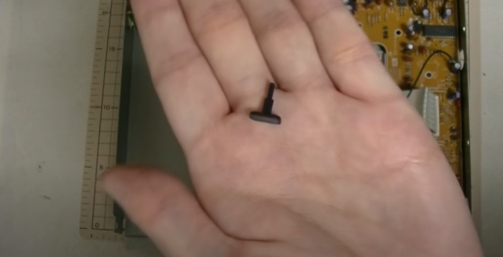 翻过机器,把前面板底部螺丝拆掉,然后把面板排线也拿掉,然后推动CD托盘到最前端,发现有个定位销正好限定了它的移动,用平口起子,把销子拿掉。