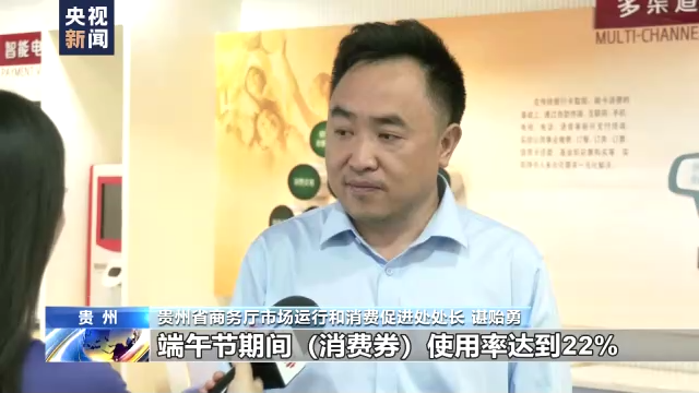 贵州省商务厅市场运行和消费促进处处长谌贻勇 :端午节期间(消费券)使用率达到22%,主要在中小微零售、餐饮门店。