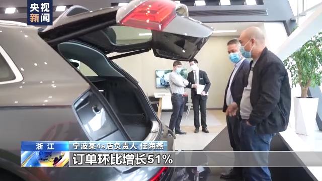 政策利好,推动各地消费市场持续回暖。浙江宁波发放2000万元汽车消费券,包括满10万元减3000元、满15万元减5000元两种面值。市民王先生去年就看中一款四驱双擎SUV,这次抢到3000元的消费券后,下定了购车的决心。
