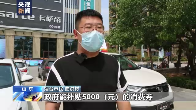 烟台市民曲洪材 :现在这个车,政府能补贴5000(元)的消费券,再加上国家有这个政策,购置税减半,这合计下来一共能省个一万四五千(元)。