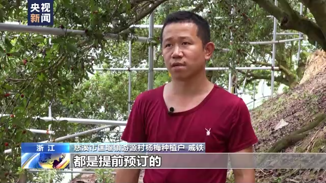 慈溪市匡堰镇游源村杨梅种植户戚铁 :订单很多,都是提前预订的,我们一般都是差不多凌晨4点多开始采摘,采摘到下午5点多,还是供不应求。