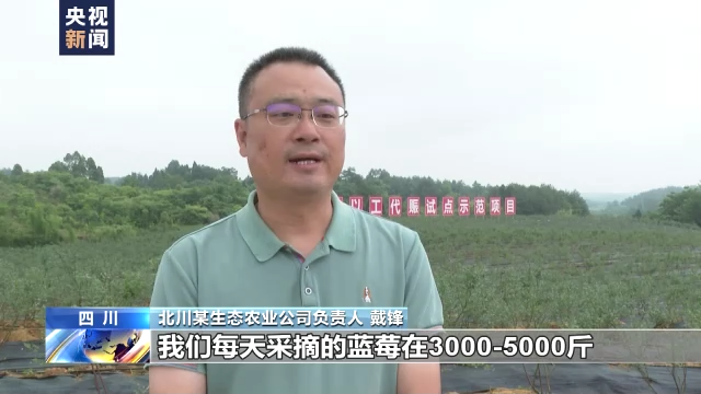 北川某生态农业公司负责人戴锋 :目前,我们每天采摘的蓝莓在3000—5000斤,我们通过配套的整个冷链体系,进行果子的储运、分拣、包装,通过冷链车及时地将果子运往成都、重庆、杭州等大城市进行销售。