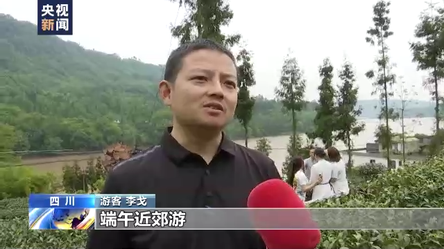 四川游客李戈 :端午近郊游,我们今天专门来体验一下采茶,亲近一下大自然,这个端午过得特别有意思,安逸。