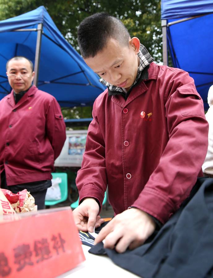记者在现场看到,佩戴学雷锋标志的老中青三代志愿者各施所长,为钢城百姓提供家电维修、理发美甲、书画剪纸、健康义诊与缝衣修鞋等便民服务。