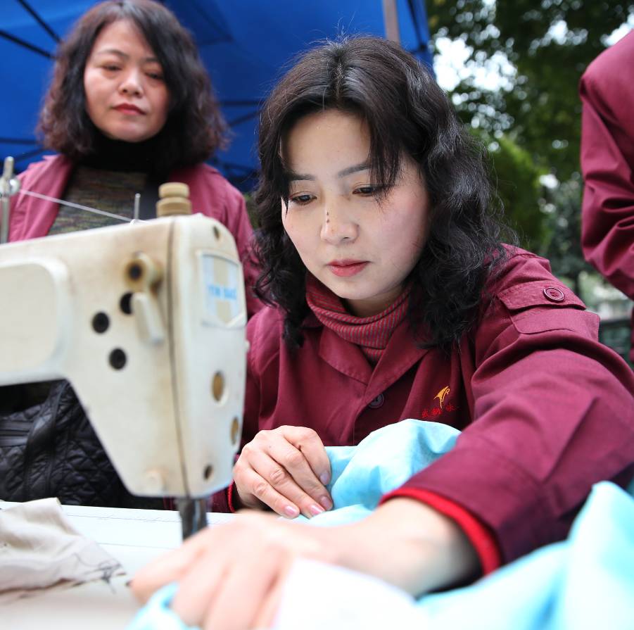 帮助居民缝纫衣物