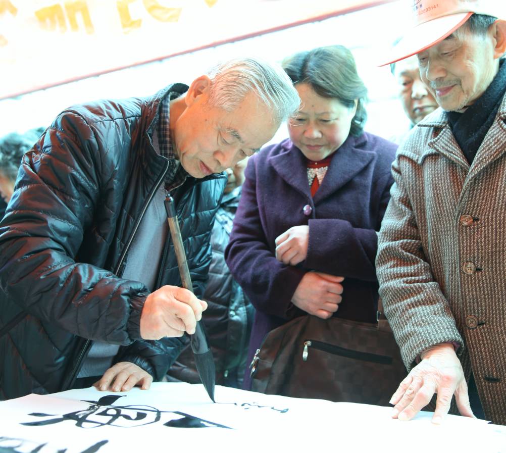 现场挥毫泼墨为居民书写幸福