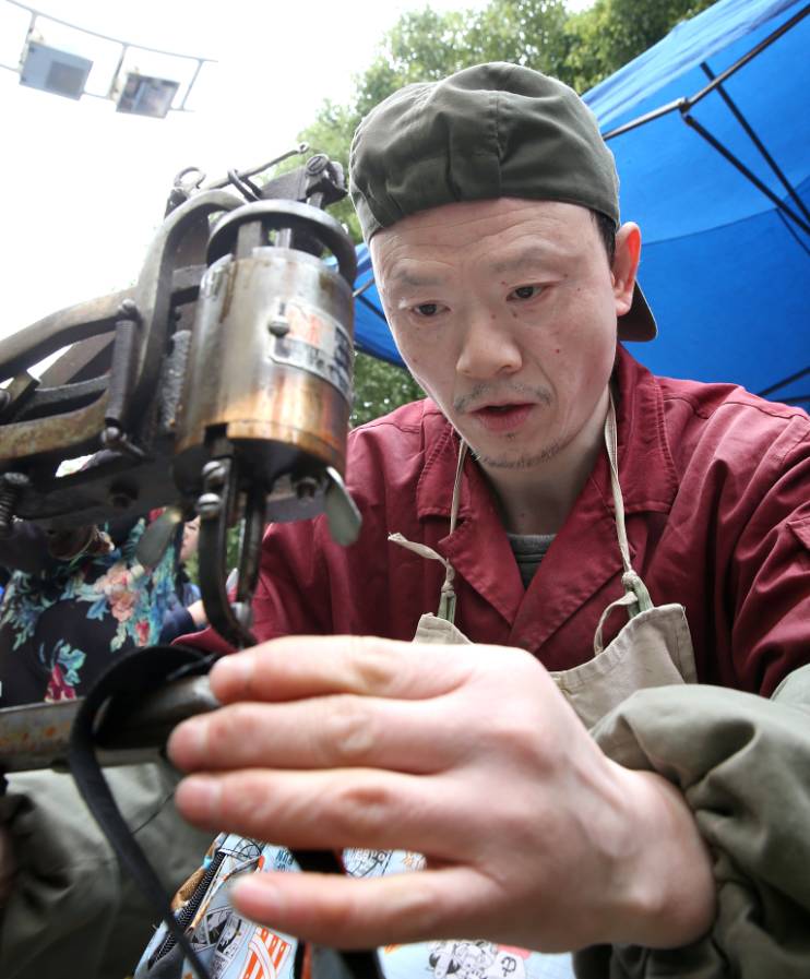 为群众修补鞋子