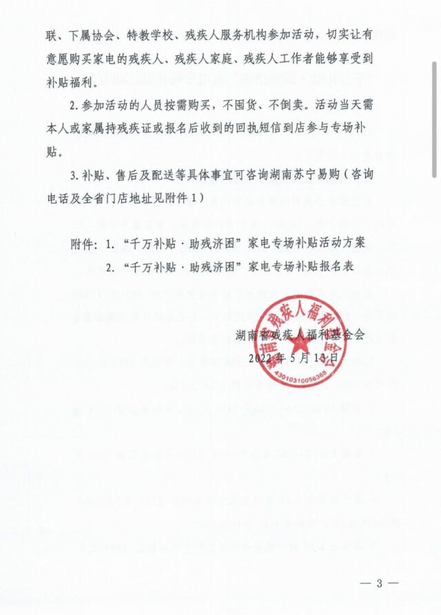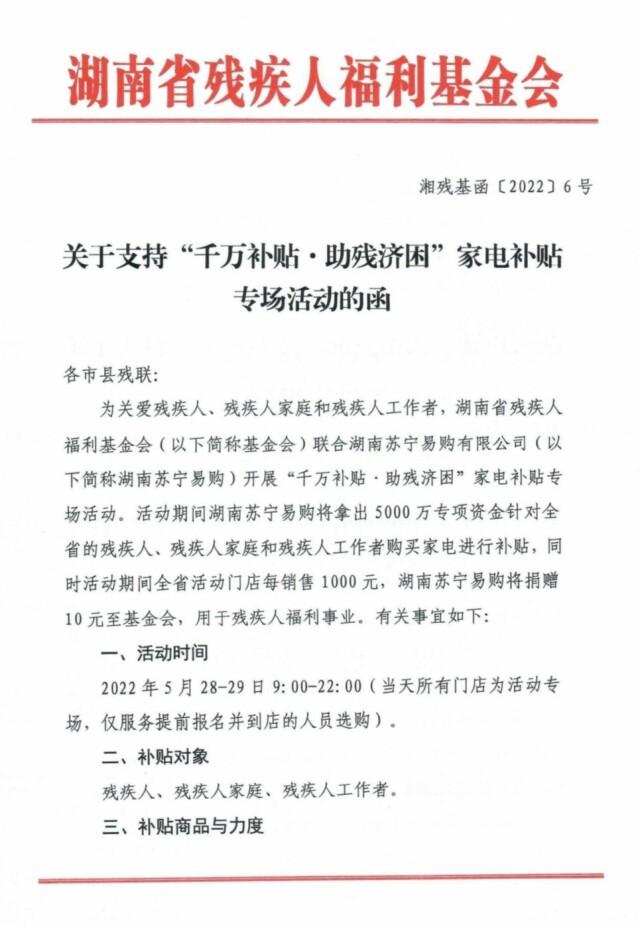 省残疾人福利基金会:支持“千万补贴·助残济困”家电补贴的专场活动函