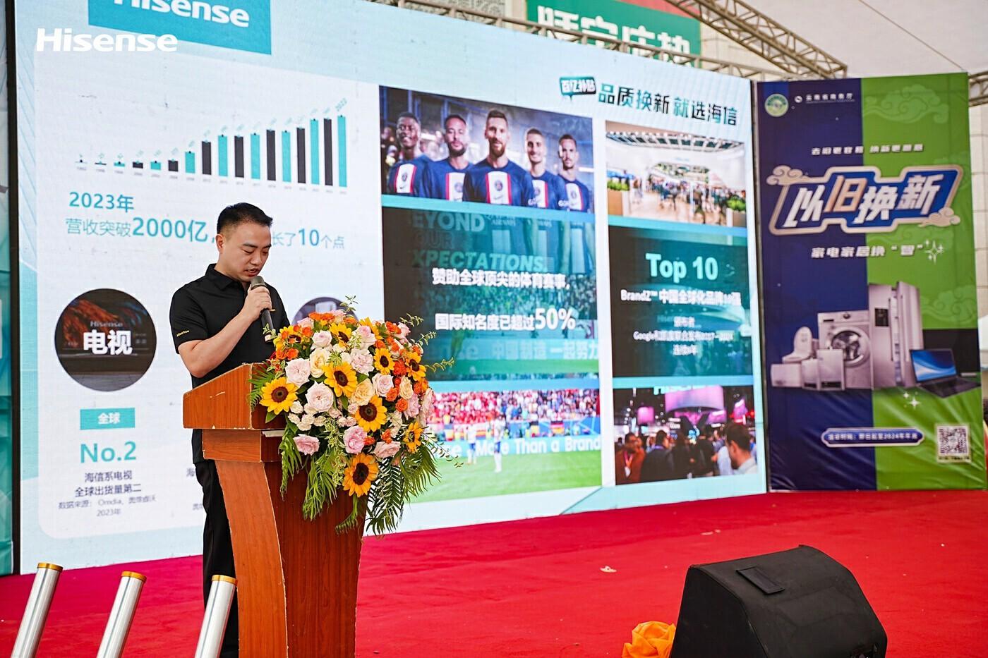 9月7日,“去旧更容易 换新更愿意”——蒙自市消费品以旧换新活动启动仪式暨海信以旧换新十城联动活动在红河哈尼族彝族自治州蒙自市滇南大商汇中心广场举行。海信将联合政府及协会,深入县(市)乡(镇)市场,持续开展家电以旧换新国补政策宣传和相关服务。