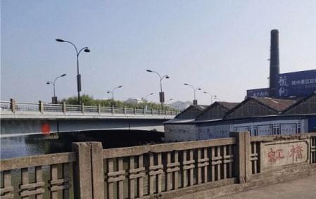 七十年代末,我离开家乡去读书,等我大学毕业回到家乡,虹桥头变了样。当时嘉兴实施长山河水利工程,海宁市河拓宽,米市街被拆了半条街,我的老家也被拆除。新建的虹桥移回到老木桥址,丝厂恢复叫中丝三厂。