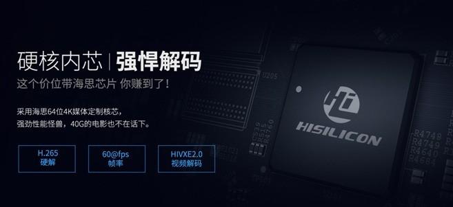 海美迪Q2 Plus内置海思4K多媒体定制芯片、强悍的解码性能、支持4K HDR、安卓7.0、16GB、4K@ 60fps、10bit、BT.2020、蓝牙4.0,丰富的腾讯视频内容等超强配置与功能,被誉为“2019年度最具性价比之王”。