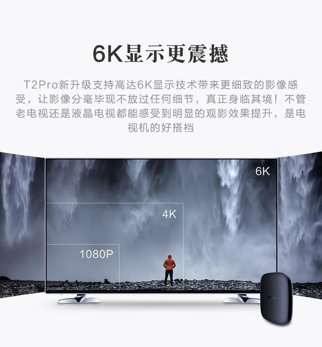 创维小湃盒子T2 Pro搭载64位的CPU,新增支持6K全高清解码;最高分辨率可达6K(5780X2890)。集成智能降噪、色彩增强、肤色保护等数十项智能算法,并且支持HDR动态画质渲染技术,可以在视频信号原有基础上,提供肉眼可感的帧率、色域提升,对比1080P以及4K分辨率,6K画面更清晰、真实,色彩更细腻自然。