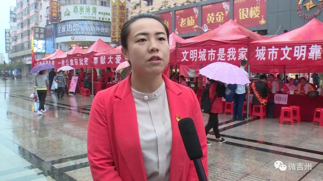 吉安职业技术学院青年志愿者协会 学生 刘双: 来宣传垃圾分类知识,就是希望更多的市民能了解它,甚至是融入城市文明当中。