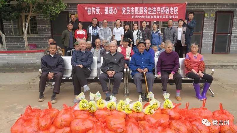 吉州区农业农村局直属事业单位党支部组织全体党员走进兴桥敬老院开展“柚传爱、爱暖心”党员志愿服务活动,带着井冈蜜柚看望敬老院老人,开启老人们美好幸福的一天。党支部通过消费扶贫的方式助力贫困户销售农产品,既帮助贫困群众发展增收,又给敬老院老人送去温暖和关怀。