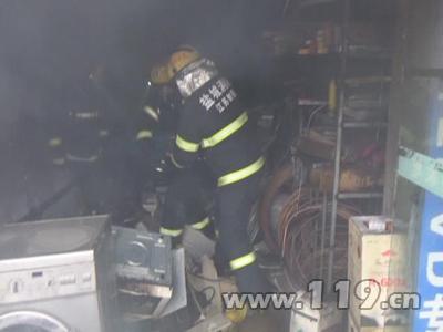 家电门市起火邻居报警 盐城消防转移钢瓶