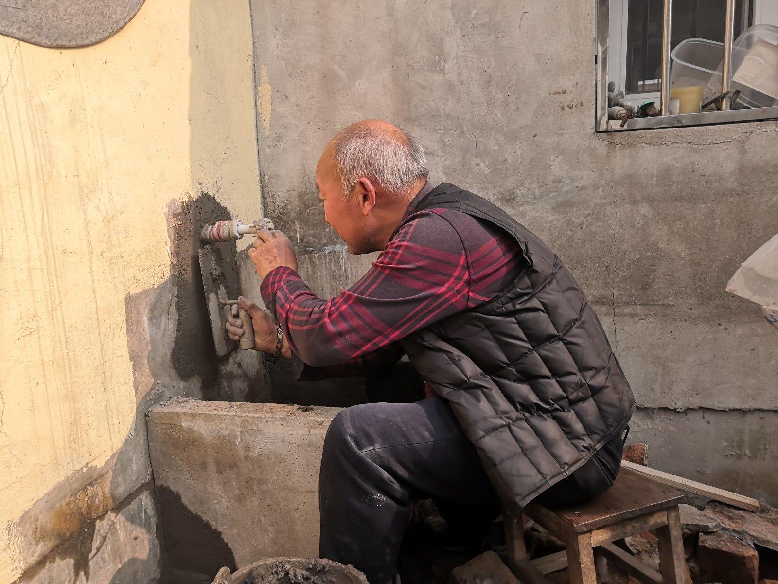 于是辛滨丰买来自来水管、接头零件和水泥沙子等材料,根据旧自来水的管道,进行拆管、掏洞、挖沟等步骤,前后忙碌3个多小时,终于将王老爹家的自来水水管更换完毕。