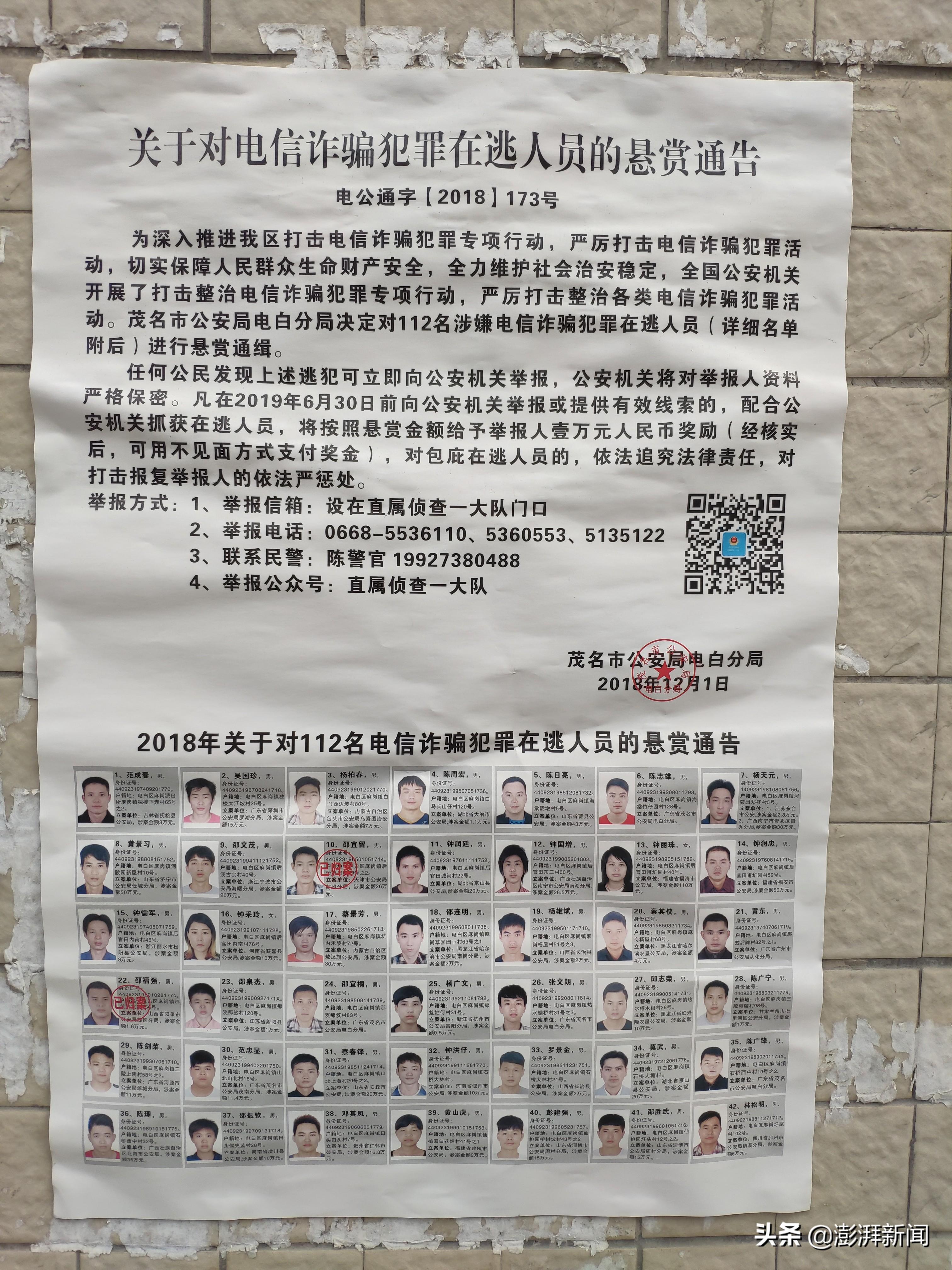 2019年春节前夕,飞崽回到广东的麻岗镇老家。镇子上的气氛和普通小镇截然不同:马路上随处可见关于打击电信诈骗活动的布告口号和标语,以及12月1日刚张贴出来的对112名电信诈骗犯罪在逃人员的悬赏通告,举报悬赏金额是一万元。