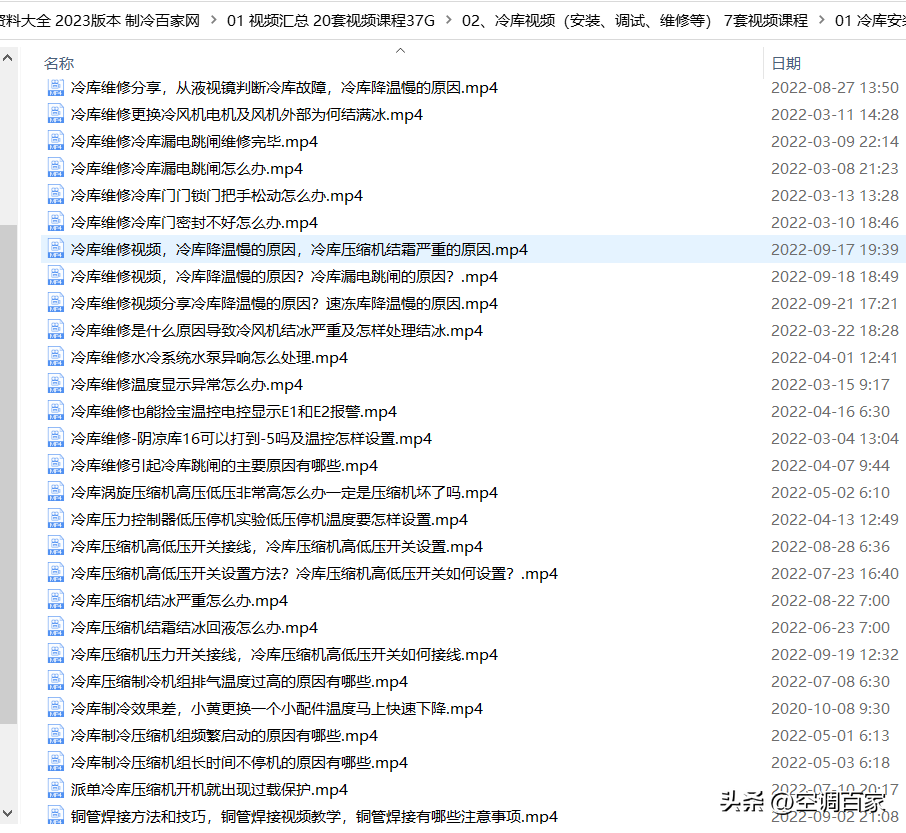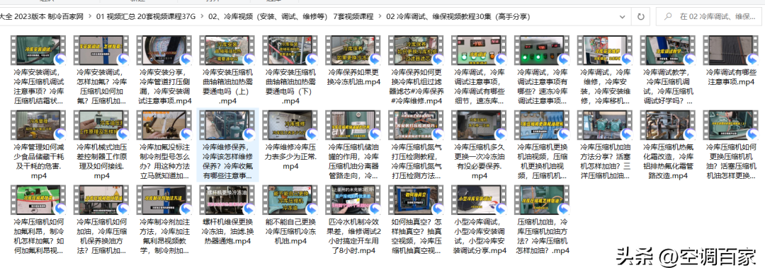本周更新了一部分资料,主要内容是关于:冷库安装、维修视频教程教程,课程来源于各大高手实战过程中分享的视频,视频目录如下: