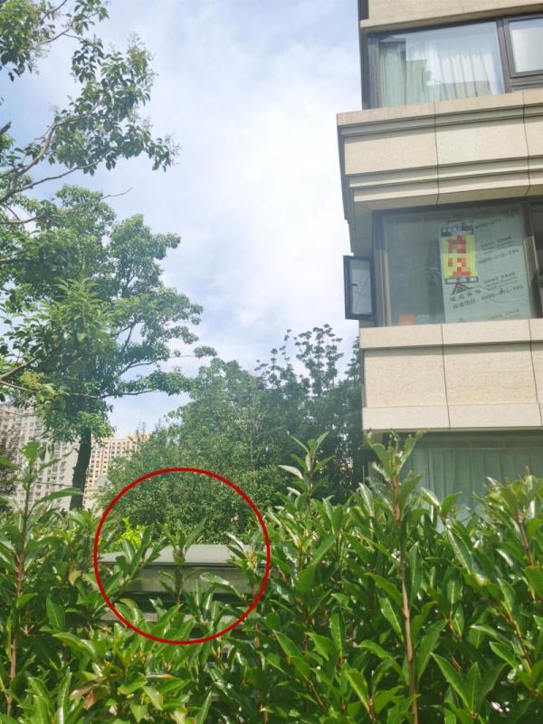 8月14日上午,记者前往一品漫城五期前滩尚城。该小区位于芦恒路和浦锦路的交叉口处,靠近芦恒路的是一排沿街商铺,北侧是居民住宅区。根据翟阿姨提供的位置,记者找到了所谓的“进风口”,就在193号的楼前。这是一个宽1.5米左右的通风口,上方盖着玻璃挡板,侧面是百叶窗结构。整个通风口被四周的绿化包围着,需要仔细辨认才能发现。不过,记者到达当天,补风机并未开启,据翟阿姨介绍,前一天她专门前往物业反映问题,物业经理暂时将机器关停了。