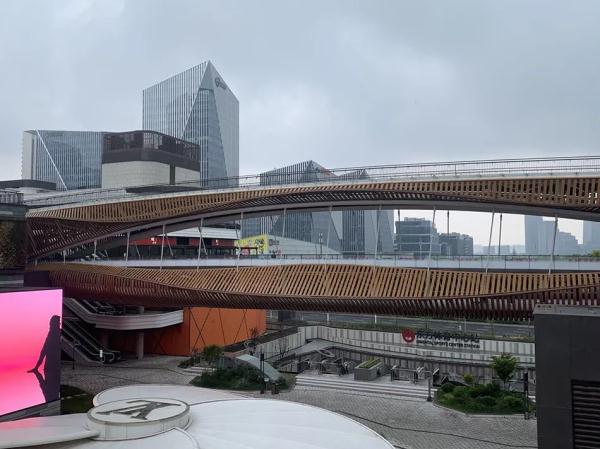 在前滩太古里的悦目桥上,章山和方瑜相对而坐,中间摆着山石榴的小炒肉和酸辣米粉套餐,露天廊桥外下着淅沥的小雨,是一场难得的“520”约会。