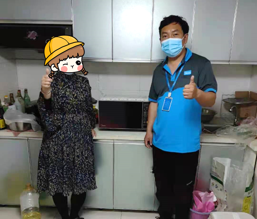 整个过程方师傅主动做好消毒措施 ,并和用户保持安全距离 。机器维修好,没有耽误用户做早饭,用户表示心里暖暖的,十分感谢师傅的付出。