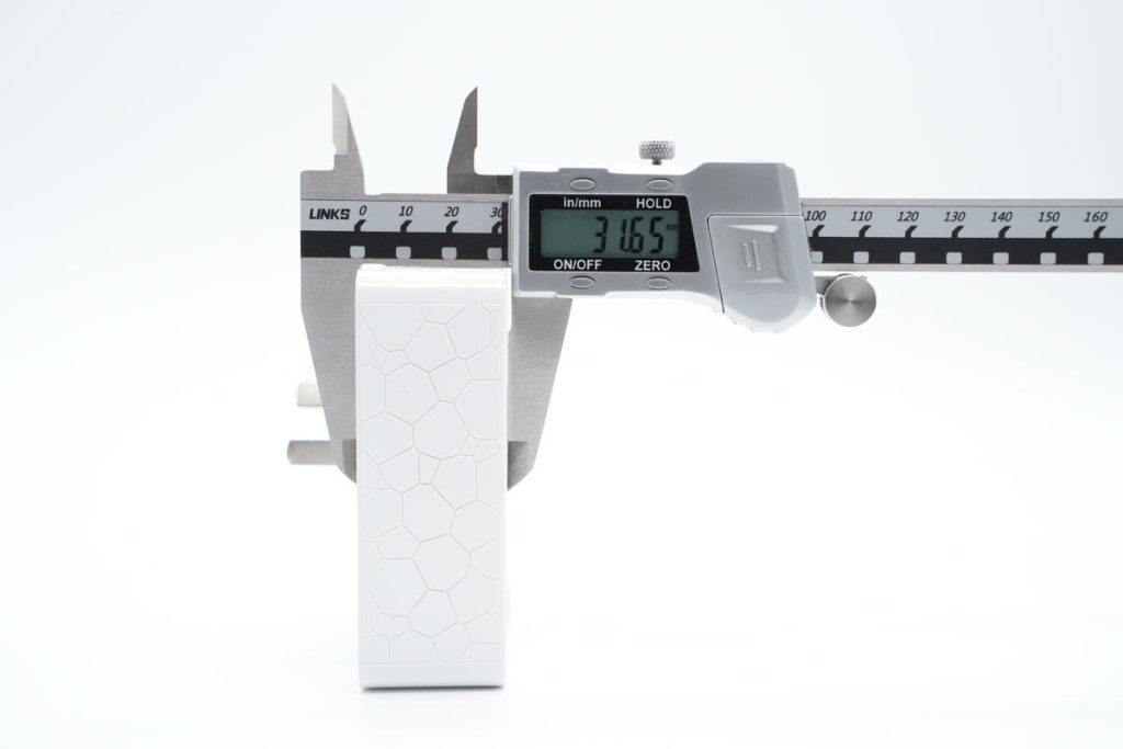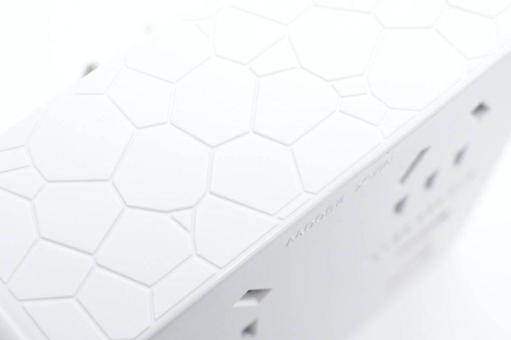 转换器为方形设计,不过和传统的86面板相比,尺寸略大一点点。外壳采用PC阻燃材质,表面磨砂处理,侧身还做了和水立方一样的外观设计,产品名称因此而得。
