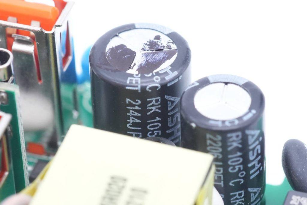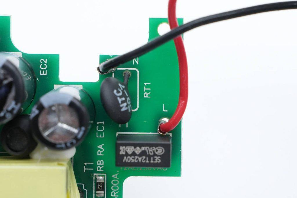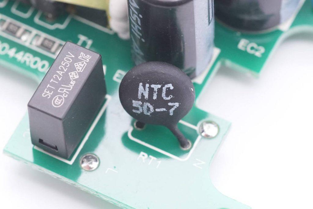 快充模块输入端一览,焊接保险丝和NTC浪涌抑制电阻。