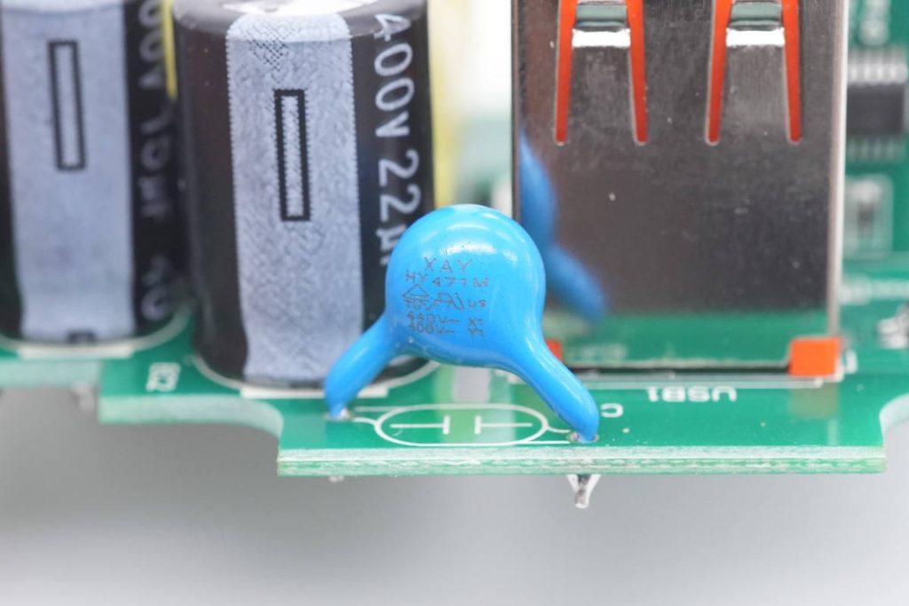 蓝色Y电容特写。