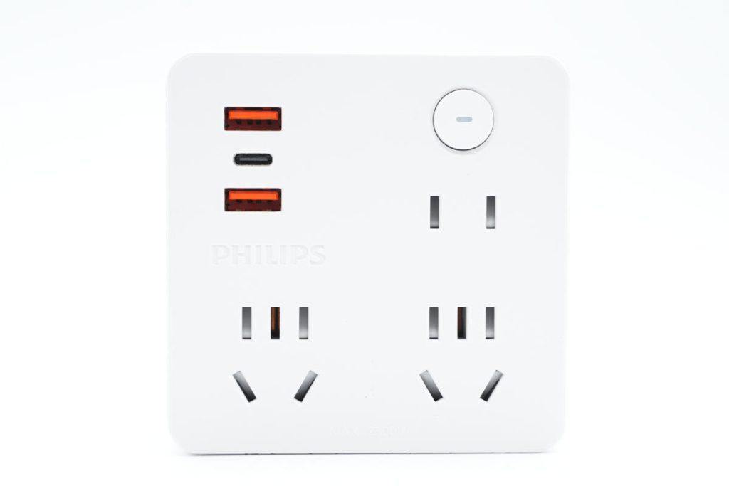 飞利浦这款转换器带有总电源开关,方便进行供电的全局控制。这款转换器还带有20W快充功能,具备2A1C三个输出接口,能够满足主流手机的快充需要,更为这款转换器增加卖点。充电头网下面就对这款转换器进行拆解,看看这款转换器的用料和做工。