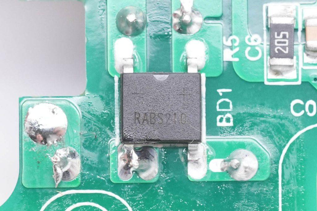 输入端整流桥丝印RASB210,规格为2A 1000V。
