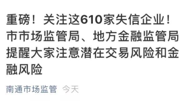 南通610家失信企业名单!提醒注意潜在交易风险和金融风险