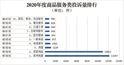 据统计,投诉案件中,家用电器类12157件,家居用品类10911件,两者共占投诉总量61.3%,超过投诉总量的一半。