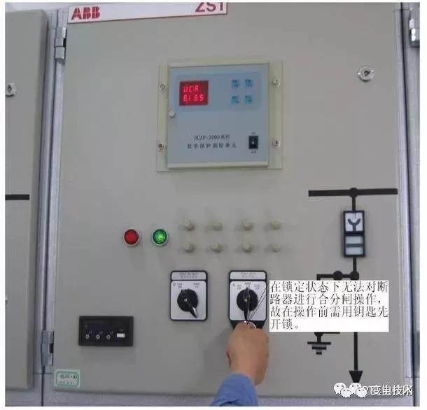 1、操作仪表盘上合,分闸转换开关使断路器处于分闸搁置,同时仪表盘上红灯灭,绿灯亮,分闸成功。