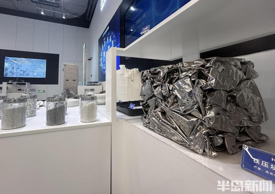 各种成分分离出来,并非最后结果。王呈健表示,这些铁、铜、铝将分别进入钢铁、铜、铝厂;易燃的泡棉将被压缩、兼容打包、循环改性再生,做成建筑板材、塑胶跑道等;而剩余的塑料进入下一个环节——清洗、造粒。