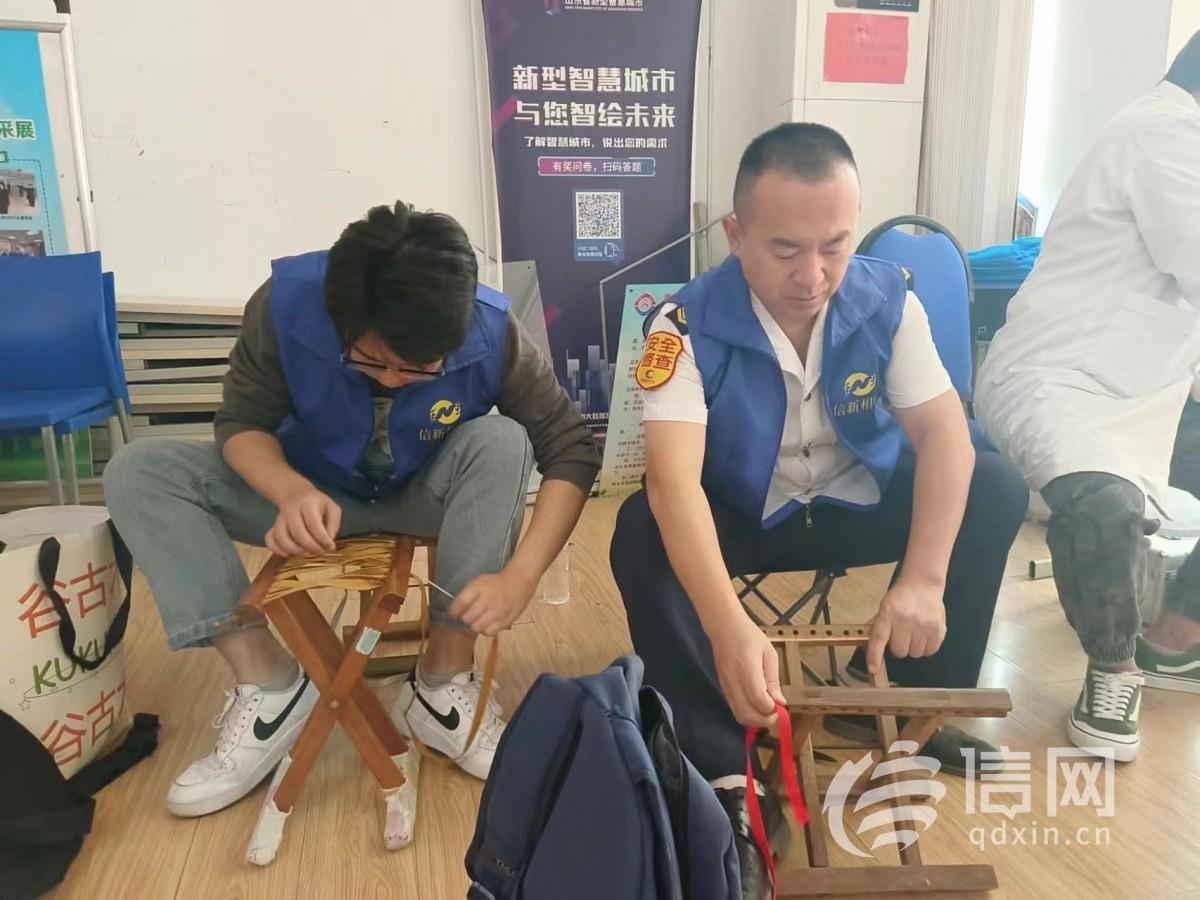 志愿者为居民提供穿马扎服务。(来源:信网 首席记者 丛黎 摄)