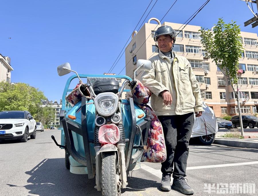 4月24日,春季的暖阳普照岛城。7时50分,吃完早饭的老刘戴上了安全帽,从他居住的小院里推出了电动三轮车,马达启动后,他沿着株洲路在车流、人流中转向了海尔路,之后他又驶向了合肥路。上午,他收购废旧家电的目的地是北村小区周边。