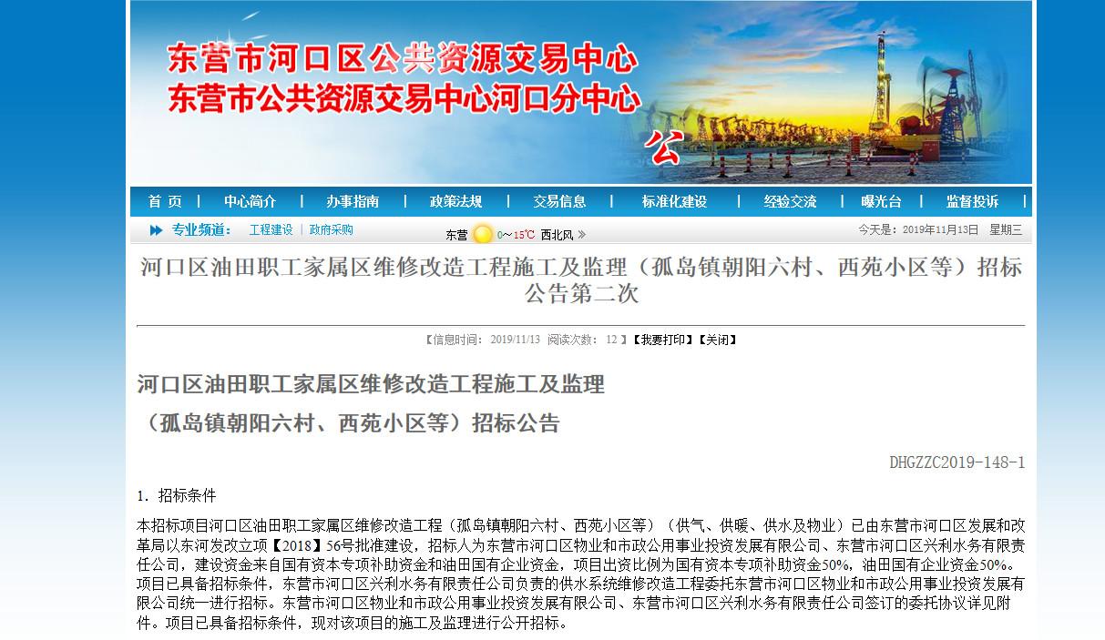近日,小编在河口区公共资源交易中心网站上看到有关于河口区油田职工家属区维修改造工程施工及监理(孤岛镇朝阳六村、西苑小区等)的招标公告。根据公告小编了解到这些地方要维修改造了!到底咋回事?