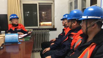 图为高成德正在组织召开作业安全预想会。