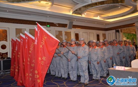 会议中,快手阿修的首席技术官详细介绍了快手阿修APP及微信服务管理平台,从发单流程开始,生动的讲解,让发单变得简单而有趣,而经销商不用每卖出一台空调,就安排工人跟车安装,而是直接在手机上通过“快手阿修”输入空调和客户信息,即可完成装载空调的安排。而工程师在线抢单的模式,通过对服务地理位置和工程师地理位置的自动匹配,大大的提高了安装效率。同时,快手阿修的金领工程师还在现场展示了标准的空调安装过程。他们娴熟的打支架、包扎铜管、抽真空等流程一气呵成,让不少经销商朋友叹为观止。誓师环节更将整个大会推向了制高点,快手阿修的首席售后官将一面面代表责任和目标的旗帜交由各地区区域经理的手中,庄严肃穆,继而整个大厅都响起了工程师激情昂扬的誓师口号,让大家无不动容,也让在场所有人士气大振。