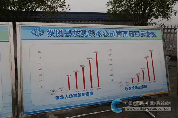 一筹莫展之际,汉阴县县长刘飞霞向他伸出了援助之手:水管老化,政府帮你排查维修;水费难收,政府出钱补贴;人员成本大,政府补助安装智能化水表。几年的时间里,涧池水厂从一个老旧水厂变成全县甚至全省的标杆:安静整洁的水厂办公环境,智能化的水质监测设备,人性化的工程维修管护,2018年底利润额突破百万元!这是政府和龙源供水公司共同“管”出来的成绩。汉阴县还有70个类同的村级水厂,管护着全县约一半行政村的农村供水工程。