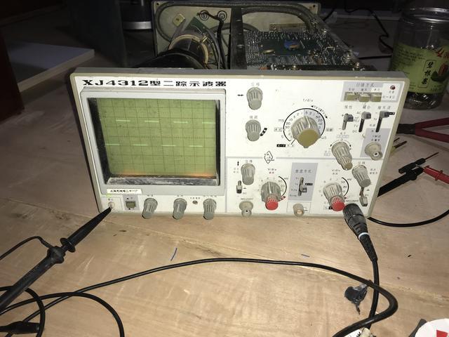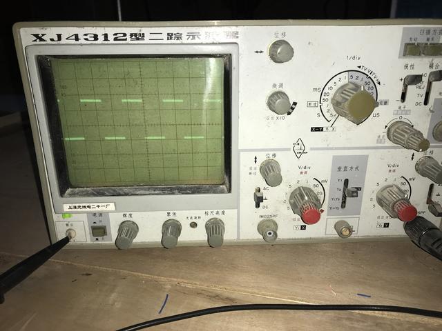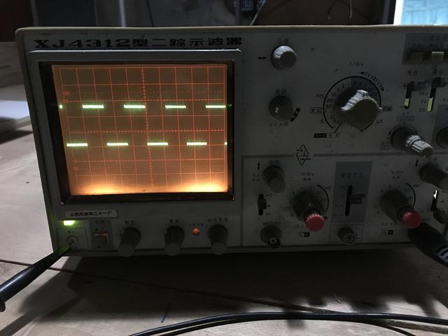当电源插上的那一刻,还是有那么一点小小的期待的,可是%……居然没有任何现象,没搞错吧……,再看看是怎么回事,难道我今天要翻船了?O(∩_∩)O,我居然忘记开机了,按下开机按钮那一刻终于出现奇迹了,几个指示灯亮起,屏幕上那泛黄的灯光也慢慢亮起,虽然屏幕没有我预期的那条亮线或者光斑,但是我觉得还是希望的,又开始一番折腾调试之后,终于终于完美了。我看到了那个性感的方波信号……